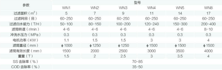 注:當廢水濃度越高、網(wǎng)目越高,SS、COD 去除率越高。可根據(jù)用戶需求,定做處理量大的機型和不銹鋼材質(zhì)配件。